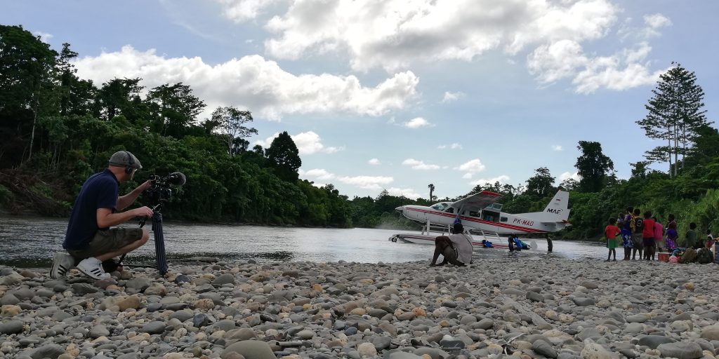 They are the MAF, Mission Aviation Fellowship, pilotes. Landing on the air strip, river and sea to distribute aid and the word of Jesus.